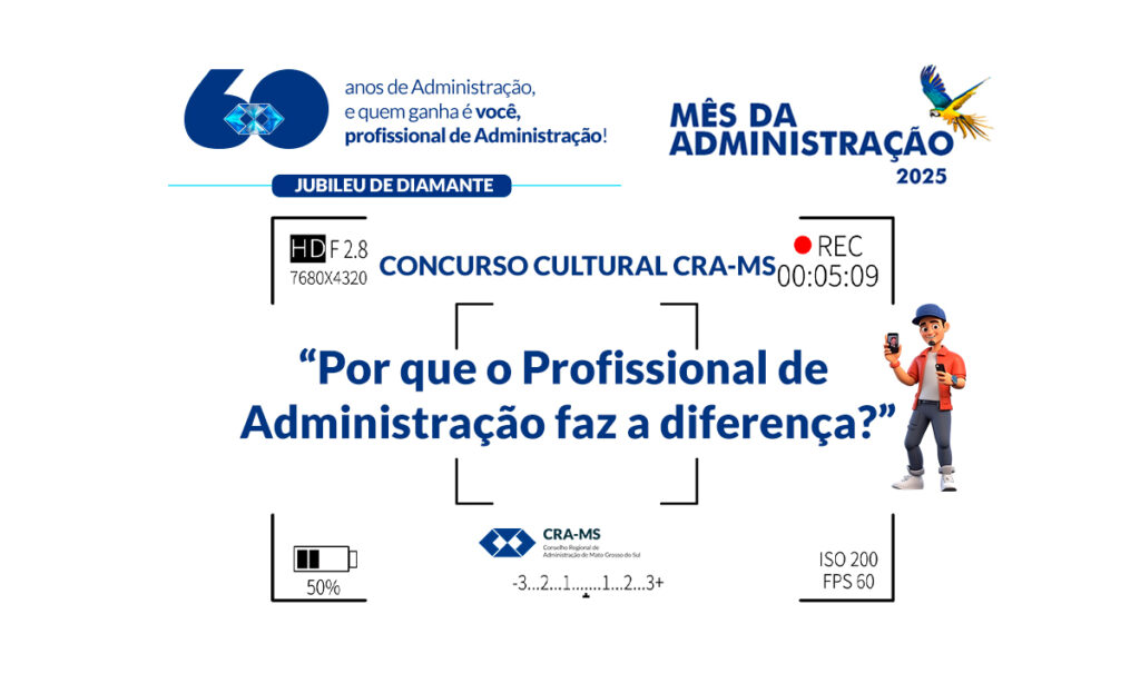 Se você está cursando Administração, seja no nível técnico, tecnólogo ou bacharelado, prepare a câmera! Em comemoração aos 60 anos da profissão e ao Mês da Administração 2025, o Conselho Regional de Administração de Mato Grosso do Sul (CRA-MS) lançou o Concurso Cultural “Por que o Profissional de Administração faz a diferença?”.