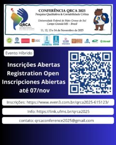 De 11 a 14 de novembro, será realizada na ESAN a Conferência “Pesquisa Qualitativa e Contabilidade Crítica”, em inglês, Qualitative Research and Critical Accounting (QRCA) 2025, com transmissão on-line e tradução simultânea das palestras.
