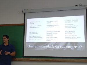 Estudantes do curso de Tecnologia em Processos Gerenciais acompanharam, na noite de quarta-feira, 12, a palestra “Aplicação de Inteligência Artificial na Gestão dos Negócios”, ministrada pelo formando de Sistemas de Informação da UFMS e cientista de dados com foco em fraudes financeiras, Gabriel Willye.