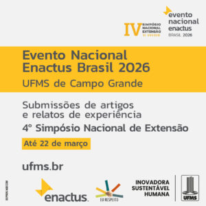 Neste ano, a UFMS irá sediar, na Cidade Universitária, o Evento Nacional Enactus Brasil (Eneb) 2026, entre os dias 21 e 24 de julho, de forma gratuita e aberta ao público.