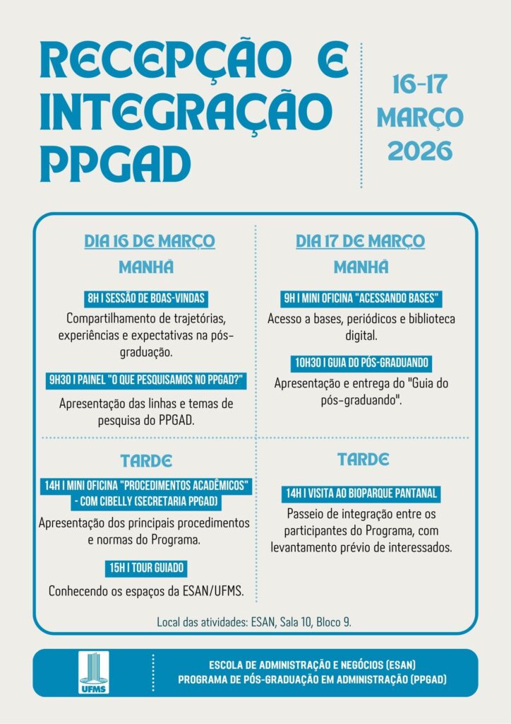 Gabinete da ESAN com informações da Comissão de Recepção e Integração do PPGAD da ESAN/UFMS