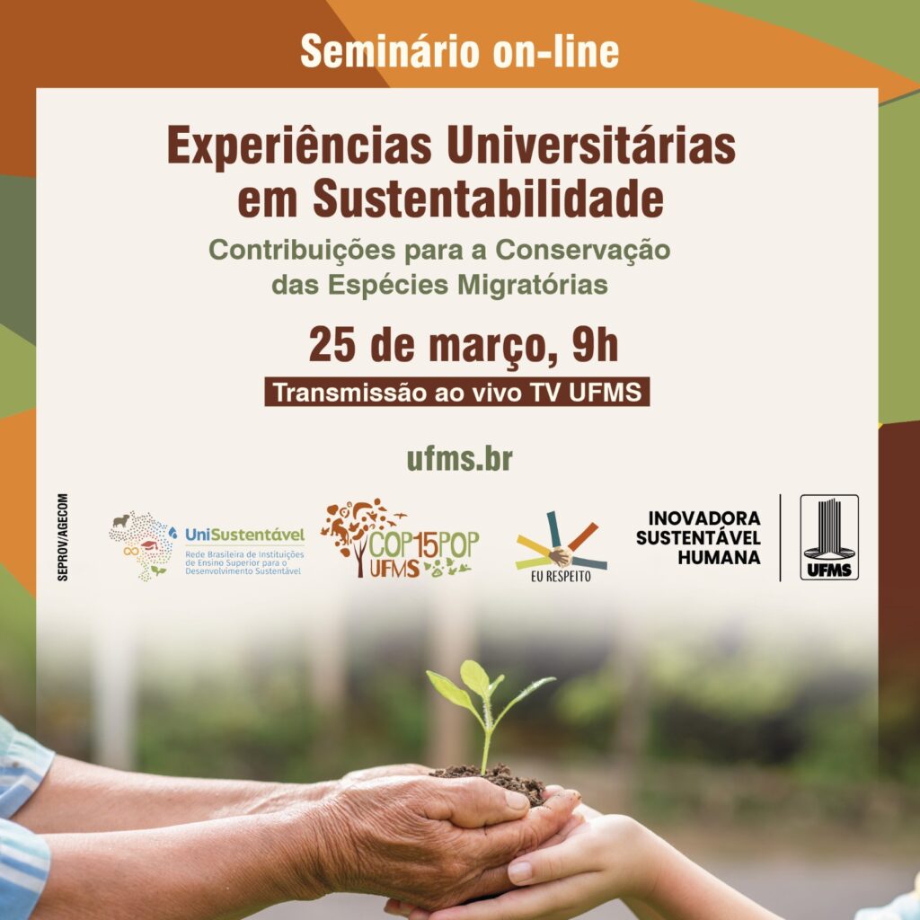 “A UFMS está envolvida nas mobilizações e atividades relacionadas a esse importante evento internacional, e o seminário integra a programação da COP15 POP UFMS, iniciativa voltada à promoção de debates, ações acadêmicas e atividades de divulgação científica sobre biodiversidade e conservação. Dessa forma, buscamos contribuir para esse debate internacional ao promover a troca de experiências universitárias relacionadas à conservação das espécies migratórias e ao papel das instituições de ensino superior no fortalecimento da agenda ambiental”, explica o diretor de Sustentabilidade Pró-Reitoria de Cidadania e Sustentabilidade, Leonardo Chaves.